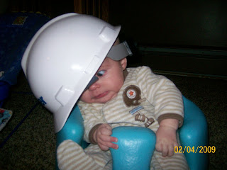 Brody has his 4 month check up. He is 14 lbs and 11 ounces (50%) , 24 and 3/4 inches tall (50%), and his head is 17 1/4 (90% of course!). Doc says he seems like a healthy little guy.